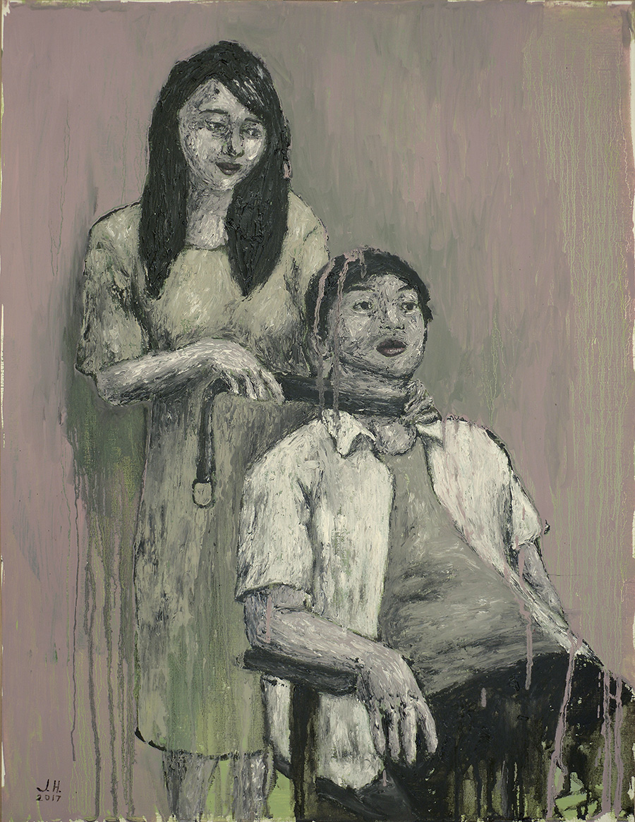 The artist took up advertising from the Technological University of the Philippines. Her paintings in muted colors but executed in vigorous brushstrokes often serve as a moral compass through which we can assess our own actions and attitudes. This is her third solo show following last year’s Disfigure and Women Aren’t Toys.