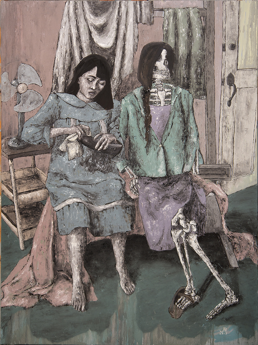 and ideas yet to be realized. But just like any machine, the mind is subjected to a constant threat of breaking down, tormented by fears and anxieties, by worries and doubts. This leads to yet another possible signification of Soft Machine: the heart as the site of emotions, the aspect of the individual vulnerable to feelings. Such layer of meaning may in turn suggest a unity between the heart and the mind, denying the dichotomy often drawn between thinking and feeling, being rational and emotional. In this sense, what troubles the mind can also cause burden in the form of pain, anguish, sadness or melancholy. The exhibition tracks these aspects of consciousness and sentiment through experimental video, installation, and a set of painted works. In various media, Johanna Helmuth relates worries and anxieties that challenge her being, and shares how she grapples with them in interacting with other people and keeping social relationships.